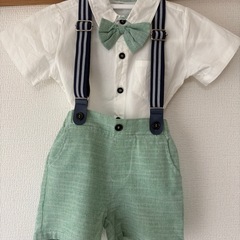 白いシャツに黄緑色のショートパンツのセレモニースーツ