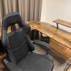 片辺130cmのL時テーブルとゲーミングチェアです。