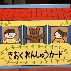 場面や図形、数の記憶を練習するためのカードセットです。縦21×横30㎝のカード(小さめの紙芝居くらいの大きさです)が54枚と設問集の冊子が入ってます。現在もこぐま会のネットショップで3,850円で販売しています。絵を見せて覚えさせたあと、絵のなかにあったものを問題として出題します。先生の指示をきちんときいて覚え、答えることができるかをみる問題の教材です。設問集を参考に練習してください。