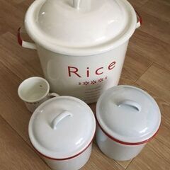 大きいほうはライスストッカーで、5キロのお米が入ります。計量カップつき