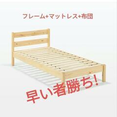 マットレス付きです。シングルの西川の掛け布団、ボックスシーツ、掛布団カバーなどおつけできます(布団などは直接受け渡しのみ)。掛け布団は来客用で使ったことがありません。