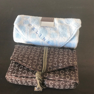 約25㎝四方のハンドタオル2枚がポーチに入ったセットです。新品未使用化粧箱あり