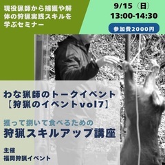 福岡で活動するわな猟師のトークイベント「狩猟のイベント」の第9弾が開催決定!