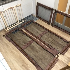 ベージュのベビーゲート以外は、小さく解体できるので、自転車のカゴ等にも積んで持って帰っていただけると思います。