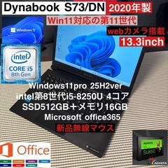 DynabookS73/DN第8世代i5-8250USSD512GB+メモリ16GBフルカスタムwebカメラ/オフィス付