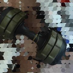 ダンベルです、10キロぐらい(?)あります。左右の黒い部分を緩めると外れ、重さを調整することが出来ます。(1枚1kg)