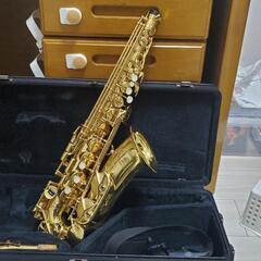 YAMAHAのアルトサックスYAS62です。全体的に使用感があります。ネックに米粒大の凹みが見られますが他に不具合は見あたりません。調整済みです。
