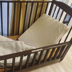ベビーベッドです。中古で購入して1年半ほど使いました。使用感ありますが問題なく使えると思います。サイズなどは写真をご確認ください。マットレスは画像では半分に折ってありますがジャストサイズです。