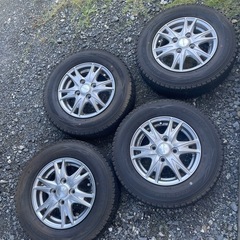 スズキ、エブリイバンにはいていたスタッドレスタイヤです。タイヤとホイールのセットで4本になります。使用年数は不明です。中古にてエブリイバンを購入した際に履いていたスタッドレスタイヤです。アルミホイールはキズ、汚れはありますが、使用には全く問題ないのではというレベルだと思います。私の主観ではありますが、タイヤの硬化はありますが溝もまだありますし、あと1〜2シーズンは使用出来るのではないかと思います。ホイールナットもこちらのタイヤについていたものをお付け致します。