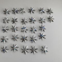 クリスマス室内装飾ディスプレイで1シーズン使ったクリスマスツリー用のスタートップと吊り下げタイプに作り替えた星のオーナメントです。