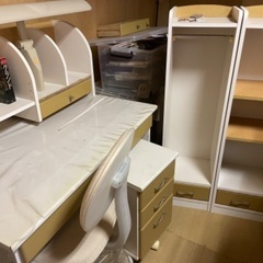 学習机、椅子、ハンガー、棚、4点セットのまとめ売りです。
