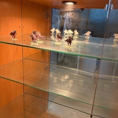 小のほうは木の仕切り板、大のほうはガラスの仕切り板で背面は鏡はめ込み、上部に照明が付いてますので推しグッズのディスプレイケースとしても十分お使いいただけると思います。2本とも、ガラスの扉付きです。