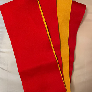 赤と黄色で両面使えるベーシックな半幅帯です。無地なのでどんな浴衣にも合わせられます。新品ですがタグはついていませんのでお安くさせていただいております。