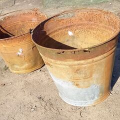 錆びたバケツ 2個。 よろしくお願いします。いい感じで錆びて、穴も開いています。よろしくお願いします。