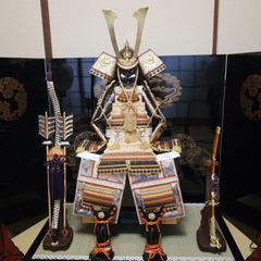 ※ご注意 写真中の太刀弓揃いと提灯は付いていません。兜、鎧、お櫃、屏風、飾り台のみです。