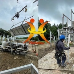 弊社は主に太陽光ソーラーパネル設置工事や屋外の配管等の設備工事や重量物の大型機械の解体設置工事をやらせていただいてます。