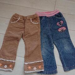 コーデュロイ生地とデニムのパンツ2枚セットです。