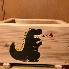 恐竜をモチーフに前後に彫刻して色仕上げにして有ります。