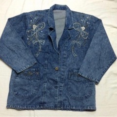 帽子の絵柄の刺繍入りのデニム ブルゾン ジャケットになります。