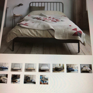 無骨でインダストリアルな空間に似合うベッド。フレームの両サイドにはオーク材が使われています。通気性が良いスノコ仕様となっています。