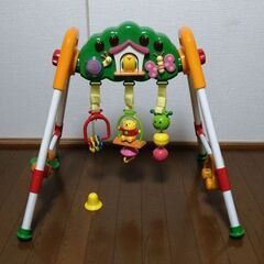 床置き(フロアメリー)にもベ ビーベッド取り付け(ベッドメリー)にも対応しているメリーです。 スイッチを入れると音が鳴ってくるくる回ります。