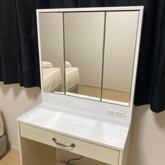 ドレッサー デスク 三面鏡 鏡台 スツール付き コンセント付き 化粧台 メイク台 三面鏡 3面鏡 収納 ミラー 木目調 北欧 引き出し 幅60 収納スペース 椅子付 かわいい ホワイト 白