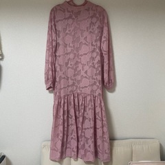 このロングワンピースは、柔らかなピンクの色合いと独特なテクスチャーが特徴です。シンプルながらもエレガントな印象を与え、様々なシーンで活躍します。