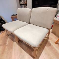 無印良品のリビングでもダイニングでも使えるソファチェア(オーク材)です。