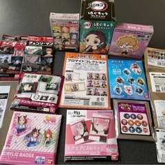 多様なキャラクターのアクリルバッジやキーホルダーのセット。