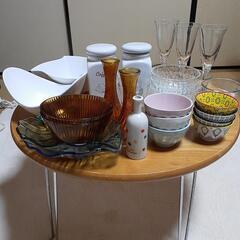 葉っぱの形のお皿と茶色の容器はブラスチック製品