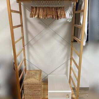 【売ります!】無印パイン材シェルフ(ハンガー/収納小物付き)