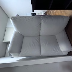 2人かけソファ(ニトリ、白革調のもの、写真はガバーをつけています)