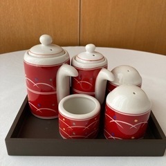 未使用品の調味料入れです。陶器で出来ており、醤油などの液体や塩などの粉末のもの、爪楊枝をいれるものです。