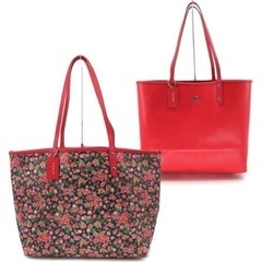 値下!コーチ美品 COACHリバーシブルトートバッグ 赤色×小花柄 A4可
