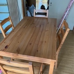 IKEAのダイニングテーブルです。イスもあります。