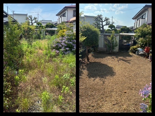 庭先に無造作に広がる雑草、隣接する住宅まで伸びてしまった木、形が不揃いになってしまった生垣の剪定!
