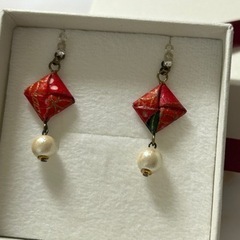 折り紙のイヤリングで折り紙の部分はコーティングされています。
