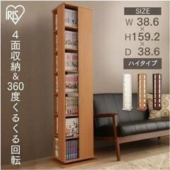 アイリスオーヤマのもので、4面収納&360度くるくる回転します。