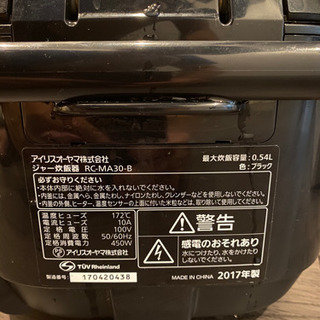 炊飯器 アイリスオーヤマ 3合 2017年製 RC-MA30-B