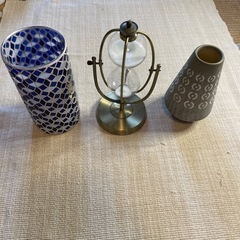 はじめまして、2つの花瓶と砂時計のセットになります。花瓶はアメリカにて購入しました。