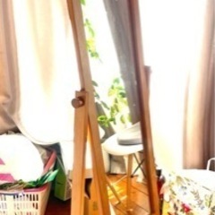 木製のスタンドミラーです。とても可愛くてモダンで、おしゃれです。キャスターが付いているので、移動に便利です。大きなものに買い換えましたので、出品します。