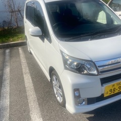 ダイハツムーブカスタムRSターボ H25年10月 LA-100 ま110000キロ 車検2年付 パールホワイト LEDヘッド LEDフォグ アイドリングストップ 前後ドライブレコーダ 柿本マフラー ターボて早いです 程度いいです ナビ テレビ