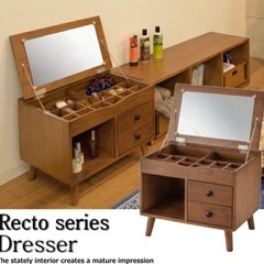 大きな鏡付きのコンパクトドレッサー。仕切り部分は取外し可能です。