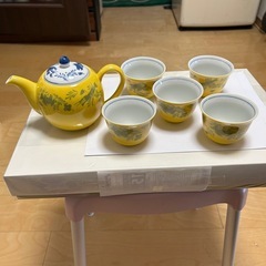 未使用品 たち吉茶器6点セット 黄地魚藻文