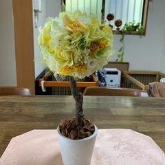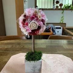 私が手作りしました。トピアリーの飾りです。窓際や卓上に飾ると素敵です。サイズは2枚目に2リットルペットボトルを横に置いて撮りました。おおよそのサイズがわかって頂けるかと思います。他色んな色の物を作っています。