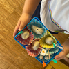 大きさが分かりやすいようにうちわを置いて撮影しました。