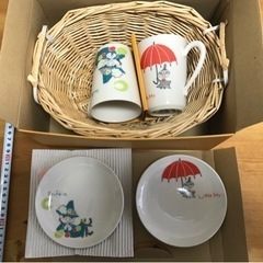 プレート2枚とマグカップ2個のセットです。(スナフキンとミイ)