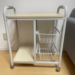 【アピールポイント】キャスター付き、カゴも両面から引き出すことが可能で使いやすいです!乾物収納や米びつを置いたりできます。