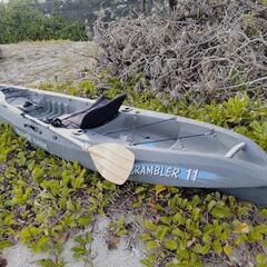 カヤック カヤックシート(古い)、カヤックカート(新品未開封)、ライフジャケット(1回使用)、バドル1本 ライカムイオン店駐車場での引き渡しを希望 近ければ自宅まで、お届けします。