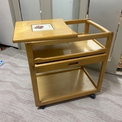 ワゴンテーブル 木製 引き出し 天板可動 陶器装飾タイル コンセント
